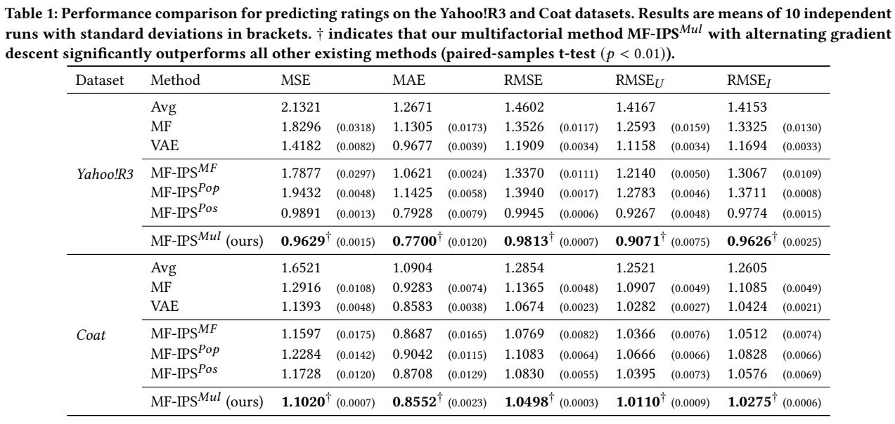 Paper: Multi-factorial Bias \(\text{MF-IPS}^{\text{Mul}}\): MF model with \(\hat{p}_{u,i}^{\text{mul}}\)